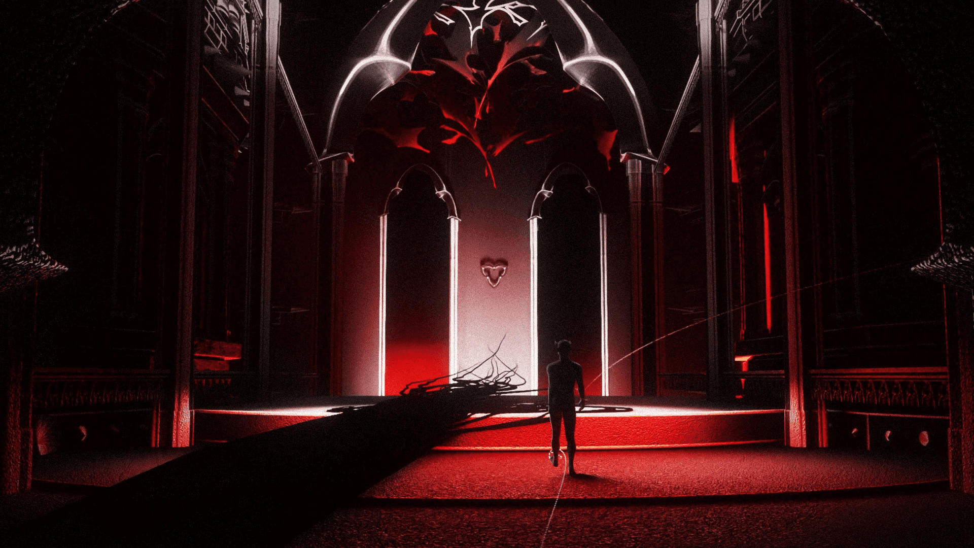 "COME, TORMENT" is a student project completed in one week with the challenge of creating a 30-second video using the word “come.” I wanted to have fun and explore a universe that blends pop and Gothic styles to tell the story of a human's ascension in his kingdom of martyrdom. As he walks toward his throne, the ground builds up beneath his feet and the tiles line up one after the other.